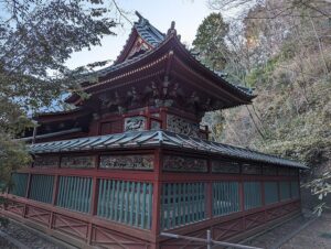 About a third of the way up the street, on the right, is the bronze torii (1747) that marks the entrance to the shrine. Through the torii is a second, more decorative gate called Zuishinmon, painted vermilion in the style of a Chinese palace.
